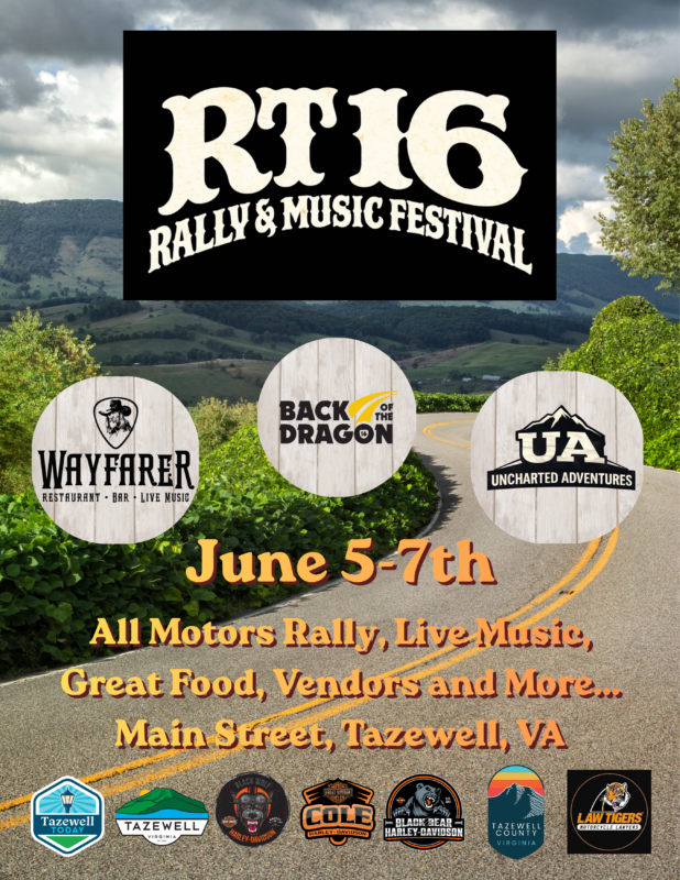 Set along the legendary Back of the Dragon, the RT16 Rally & Music Festival is a high-energy Appalachian weekend where music, motorsports, and road culture come alive. Riders, drivers, and travelers from across the region gather in the heart of Tazewell, Virginia to celebrate the spirit of the open road—through live music, adrenaline-fueled action, and authentic mountain culture.